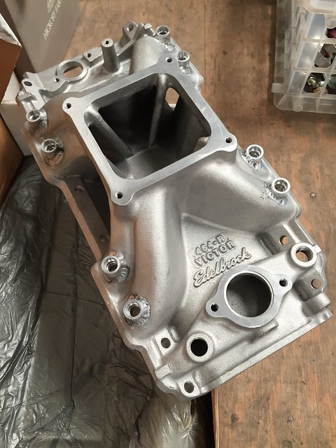 This is brand new, never used. It has been drilled and injector bungs welded in to convert to EFI. I can make you the rails too if you want them, but does not come with them. Its very easy to make rails so I decided to give the option to sell bare. This is 4500 plenum, rectangular port. The 454-R never came as an EFI option, so this one is ready for your build. I can also provide any EFI parts you may want or need also.
